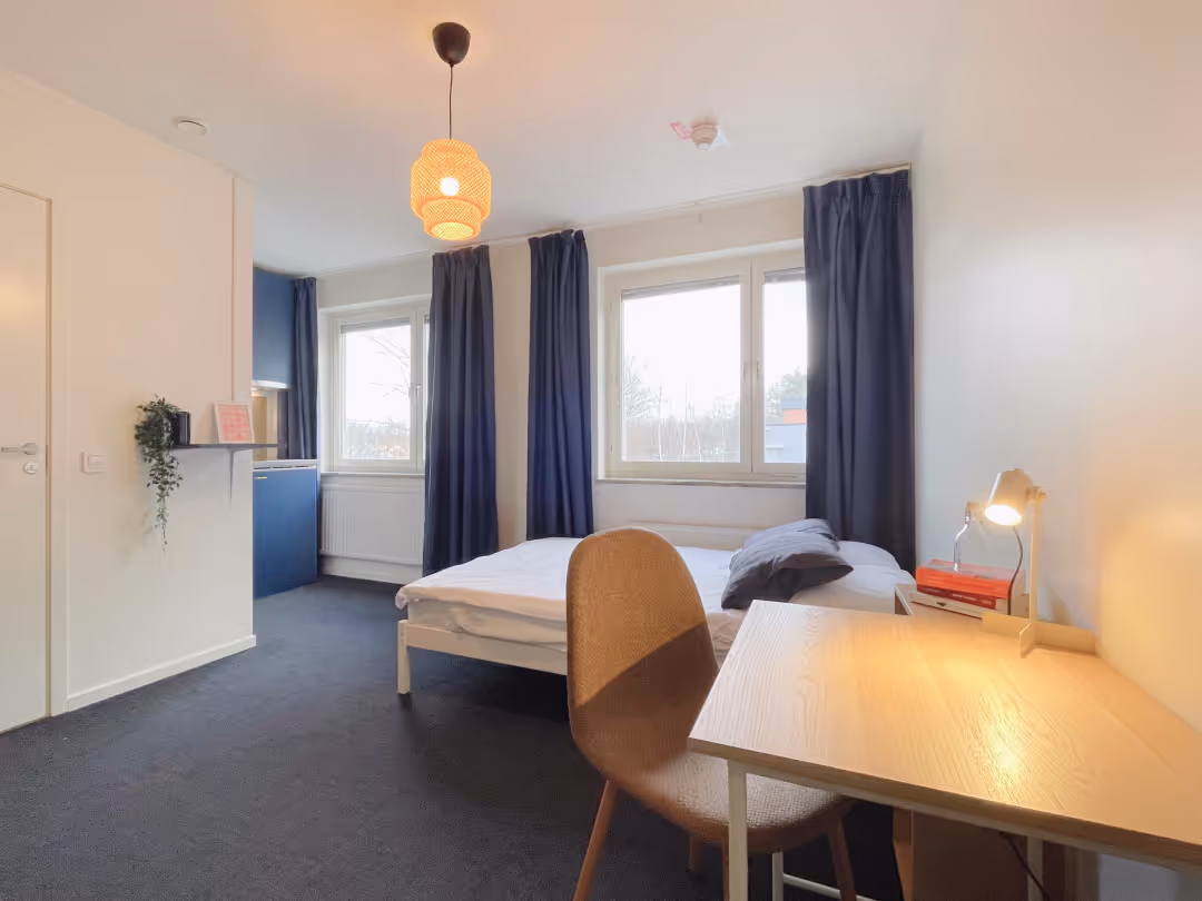 Studiorna som erbjuds på Ängby Aces finns i flera storlekar, men är alla fullt utrustade med ett privat pentry och badrum.